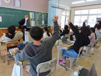 7月13日(木)に、愛南町役場の栄養士山本さんと食生活改善グループの森本さん、吉田さんをお迎えし、1・2年生が食育教室を行いました。