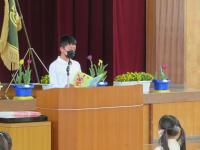 始業式では、児童の代表が夏休みの思い出や2学期にがんばりたいことを発表しました。式辞では、一人一人が「思いやりの心」と「たくましい心」を大切にして、皆で温かい楽しい学校を創っていこうと話しました。